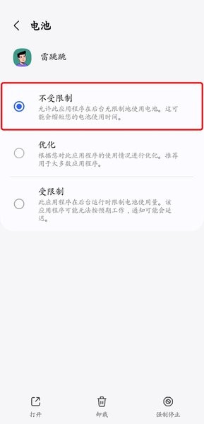 安卓系统会对后台运行的应用进行电源优化,这可能导致程序无法长时间保持运行。为了确保雷跳跳稳定运行,建议将其电源优化级别调整为“不优化”或“无限制”。