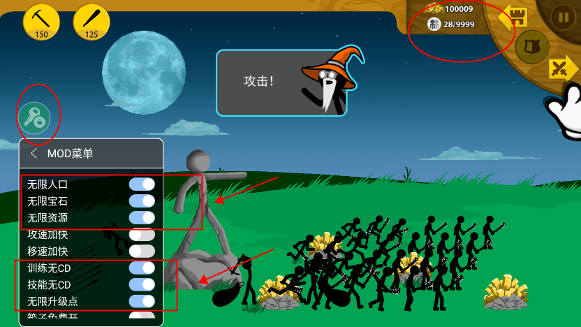 火柴人战争遗产的99999钻石、9999金币和9999人数版本是这款火柴人战争MOD中的召唤菜单版,是一款极具吸引力的火柴人射击游戏。角色形象设计简洁,结合了PRG元素,玩家可以操控多种武器,与对手展开激烈对抗。喜欢这款游戏的朋友们不妨立即下载试玩。
